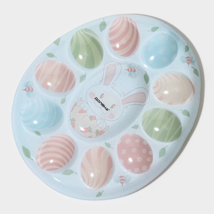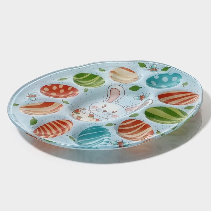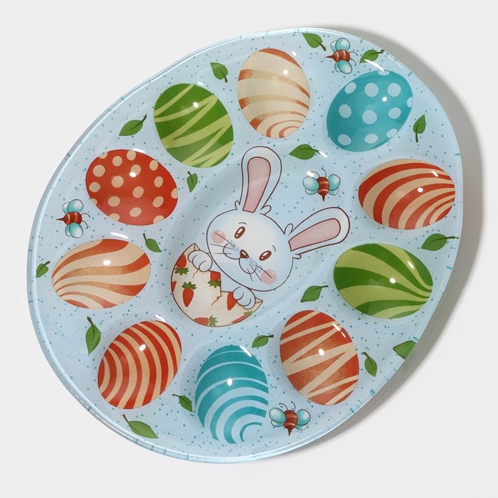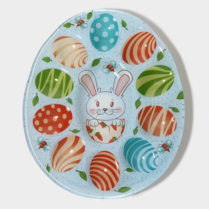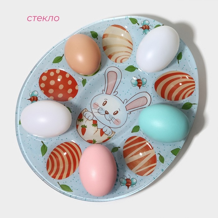 Подставка стеклянная для яиц Доляна «Зайка», 24×20,6 см, 10 ячеек, цвет голубой