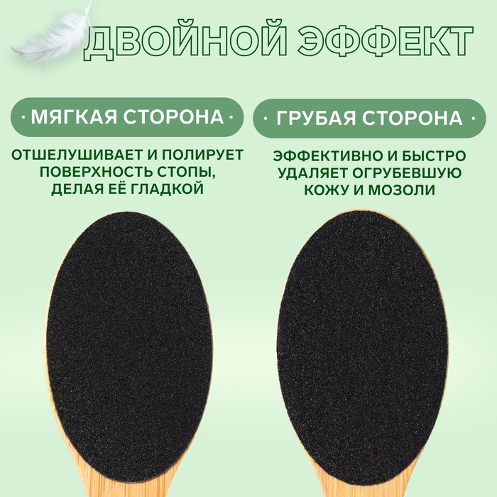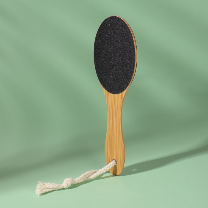 Кожа на ногах не такая нежная, как кожа рук, и требует особого внимания и ухода. Воспользуйтесь тёркой для ног. Двухсторонняя тёрка-наждак – это универсальный помощник в процессе ухода за ногами. Она бережно очистит огрубевшую кожу от мозолей и натоптышей, и ваши пяточки примут здоровый и ухоженный вид. Товар подходит как для женщин, так и для мужчин .Преимущество бамбуковой тёрки заключается в впитывании влаги и пропуск воздуха. С одной стороны находится тёрка, которая поможет удалить огрубевшую кожу, а с другой – наждак, который придаст пяткам мягкость и обработает сухие мозоли.Удобную эксплуатацию педикюрного инструмента обеспечит длинная ручка и подвес.