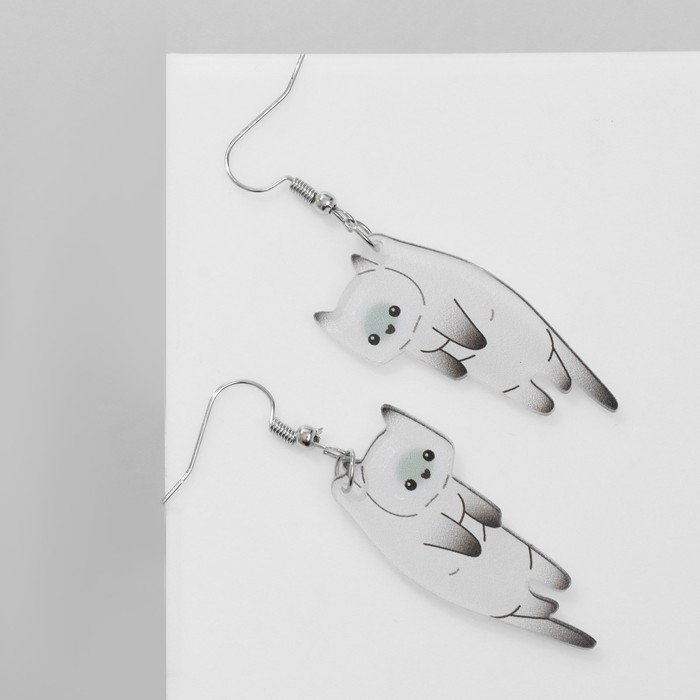 Серьги акрил «Котики», цвет бело-серый