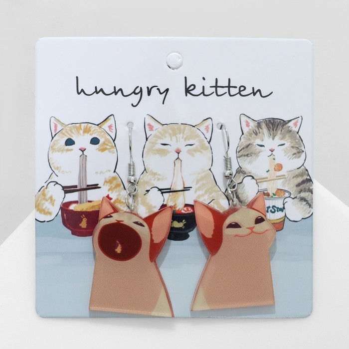 Серьги акрил «Коты» забавные, цвет бежево-коричневый