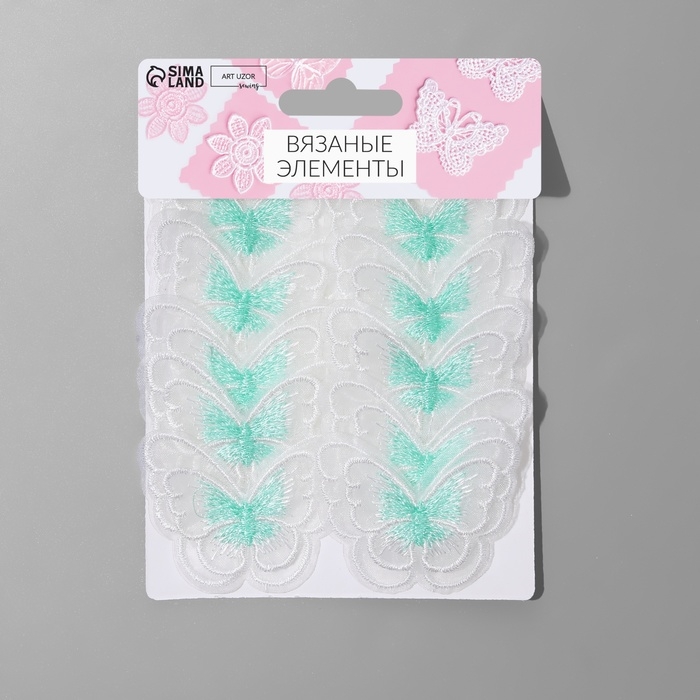 Вязаные элементы «Бабочки двойные», 5 × 4 см, 10 шт, цвет мятный/белый