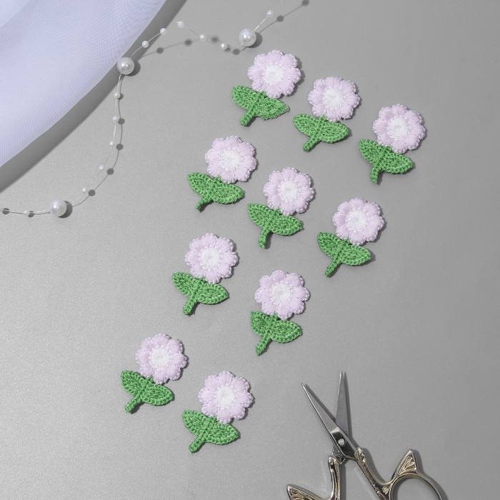 Вязаные элементы «Цветочки», 2,5 × 3,5 см, 10 шт, цвет сиреневый/зелёный