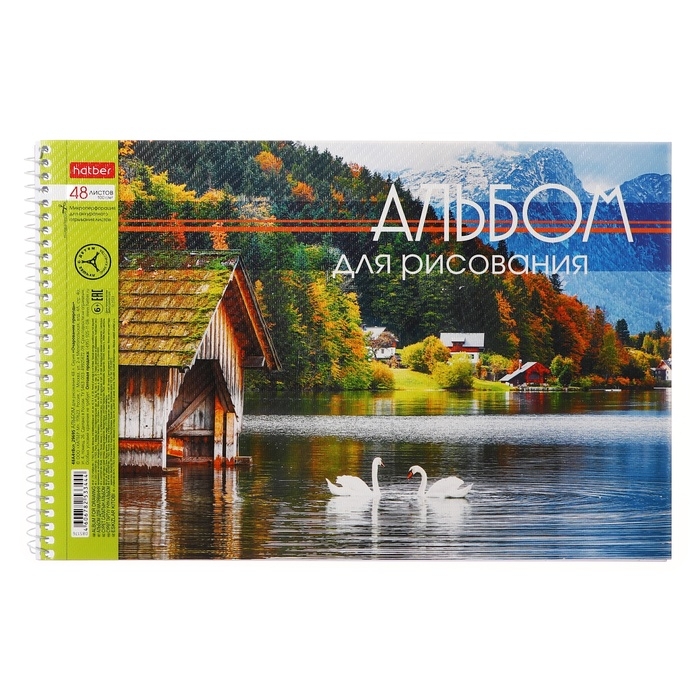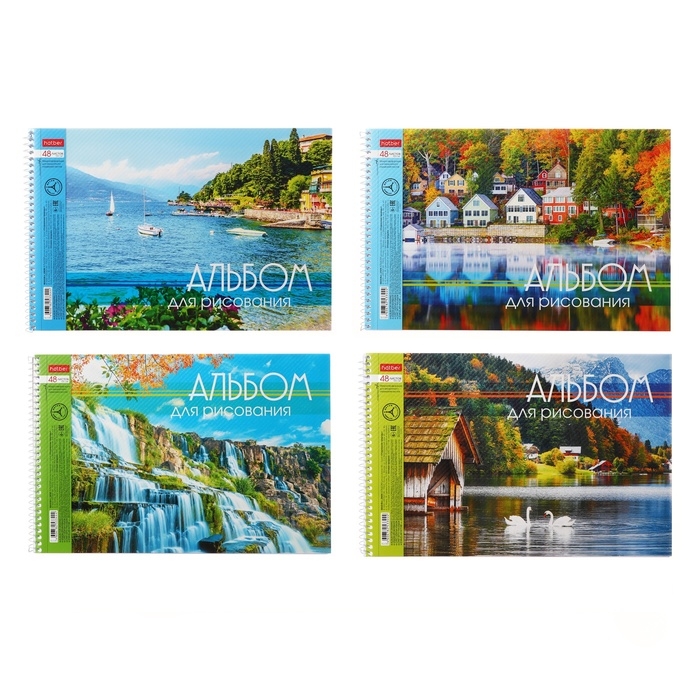 Альбом для рисования А4, 48 листов на гребне "Очарование природы", обложка мелованный картон, тиснение, блок 100 г/м2, МИКС