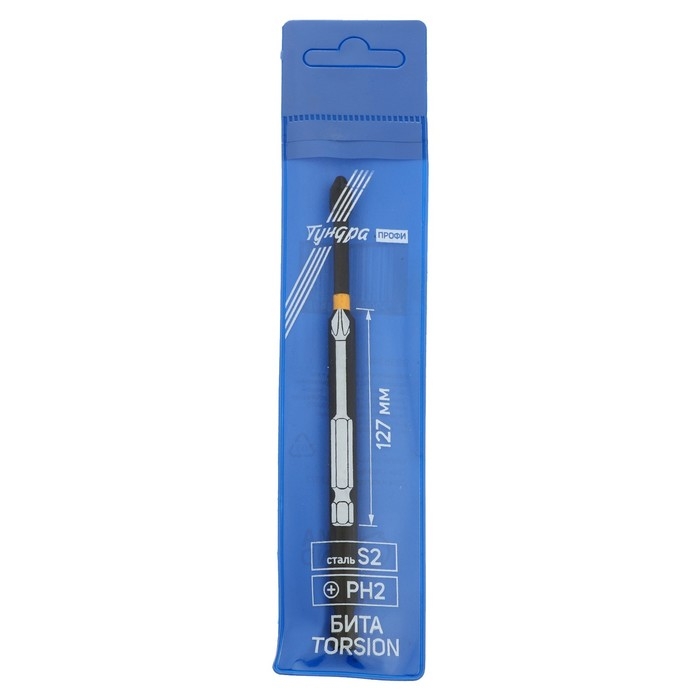 Бита ТУНДРА ПРОФИ, Torsion, сталь S2, PH2 х 127 мм, пвх-чехол