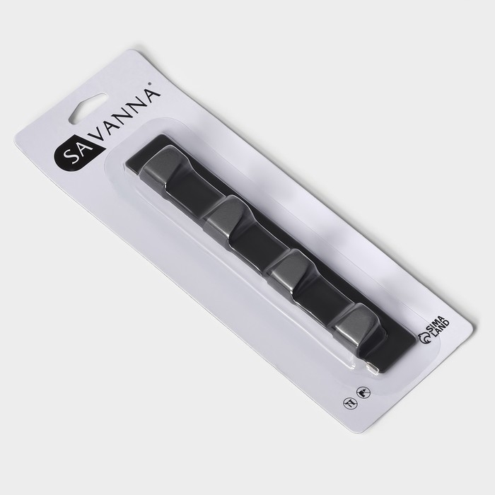 Крючок самоклеющийся SAVANNA Black, планка, металл, 4 крючка, 16×2×2,5 см, цвет чёрный