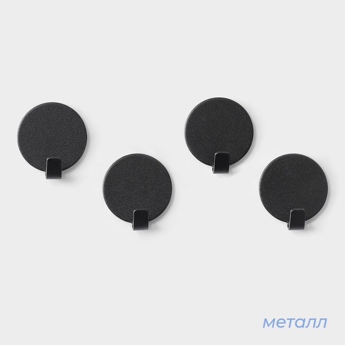 Крючки самоклеющиеся SAVANNA Black Loft, 4 шт, металл, радиус 3,4 см, цвет чёрный