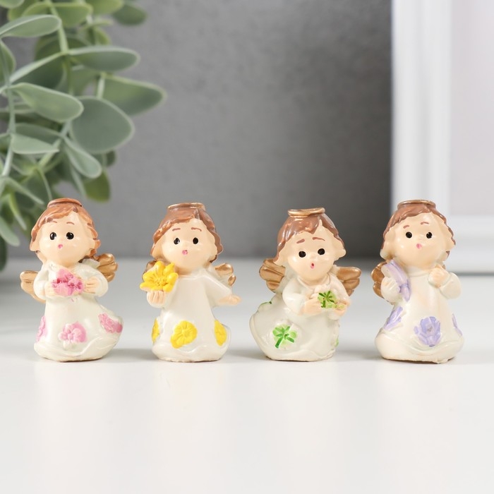 Сувенир полистоун "Ангел с цветочком" МИКС 2х2,5х4 см