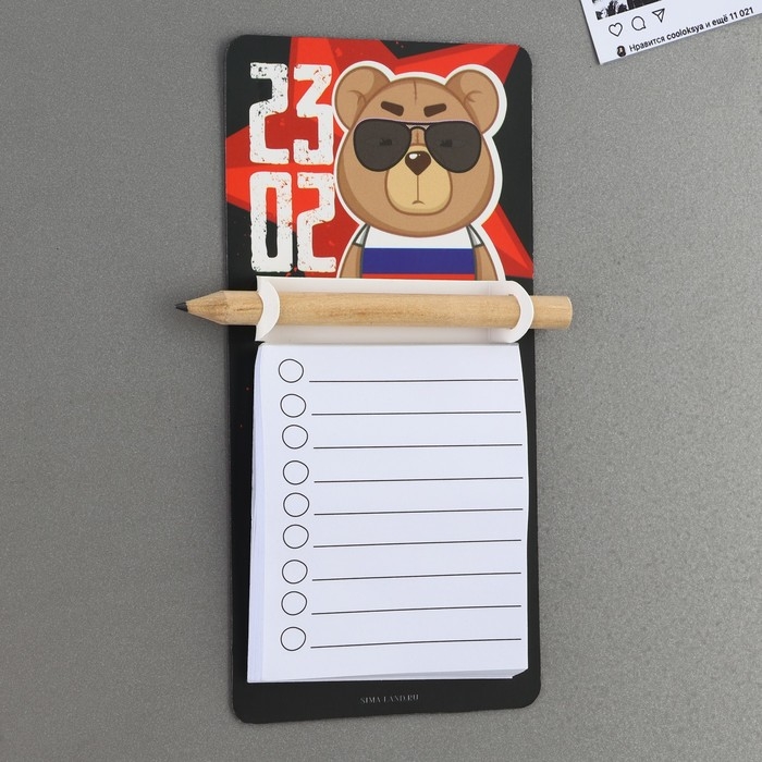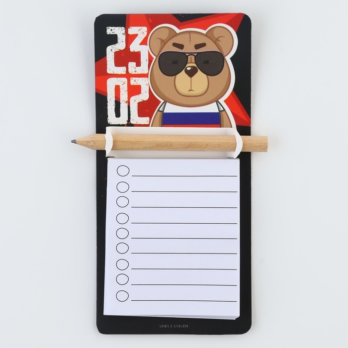 Магнит с блоком для записи и карандашом «23.02», 7 х 14,4 см