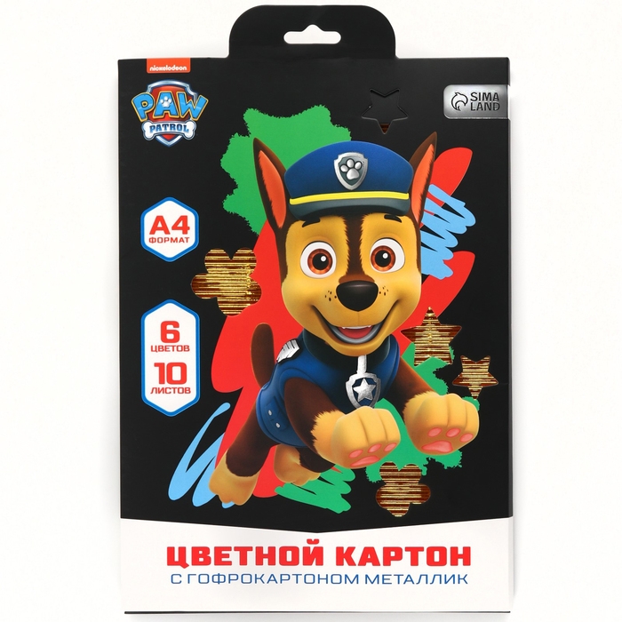 Картон цветной гофрированный, А4, 10 листов, 10 цветов, немелованный, двусторонний, в папке, 230 г/м², Щенячий патруль