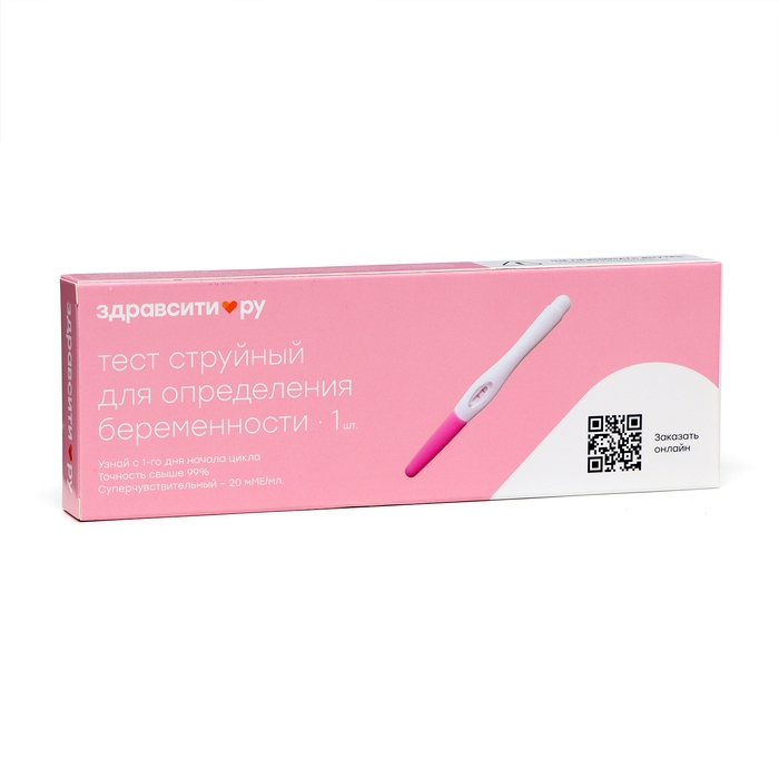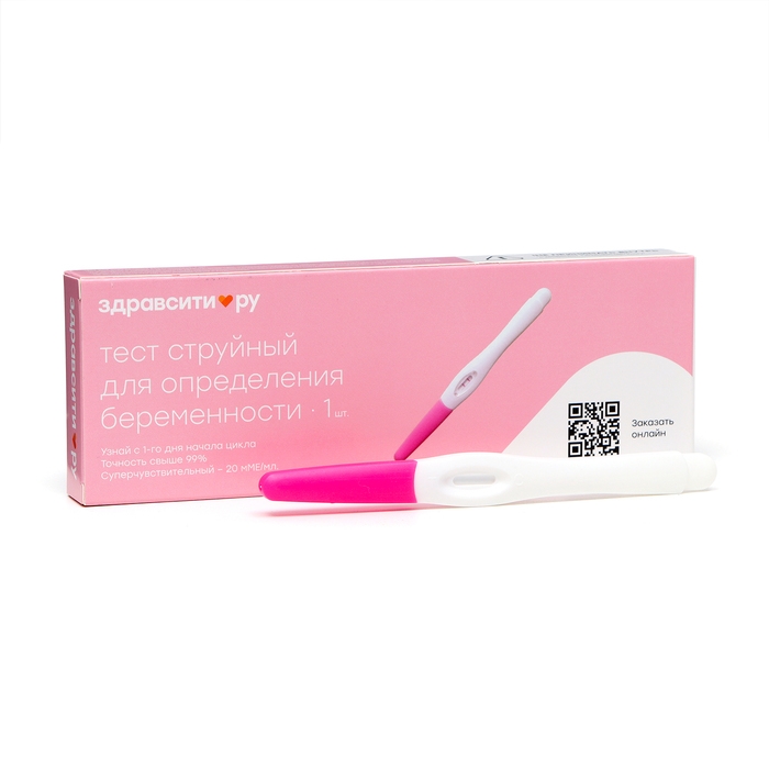 Тест на беременность Здравсити струйный предназначен для определения гормона беременности — хорионического гонадотропина человека в моче. Тесты на беременность позволяют диагностировать беременность на ранней стадии в домашних условиях. Точность лабораторных анализов показала более 99,9% достоверных результатов. Тест на беременности суперчувствительный, благодаря показателю в 20 мМЕ/мл тест полоски помогают определить возможную беременность с 1-го дня предполагаемой даты начала цикла.