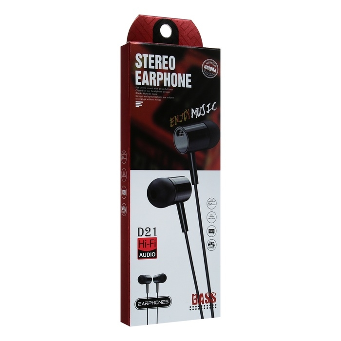 Наушники D21, проводные, вакуумные, микрофон, 1 м, Jack 3.5 мм, черные