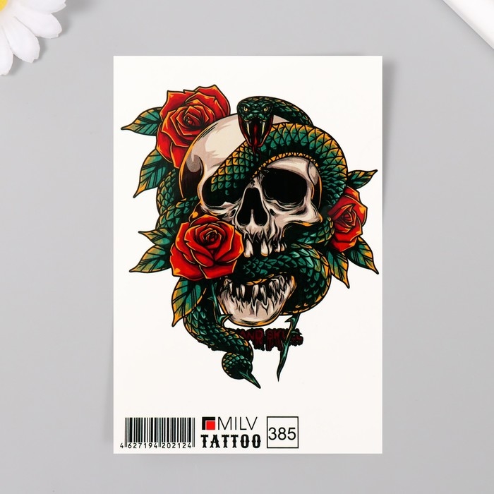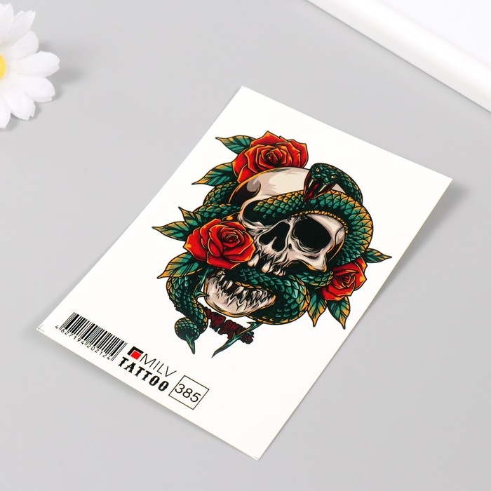 Новогодня татуировка на тело "Череп со змеёй" 10х15 см