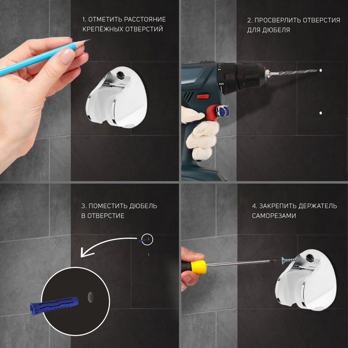 Держатель для душевой лейки ZEIN Z107, нерегулируемый, самоклеющийся, черный