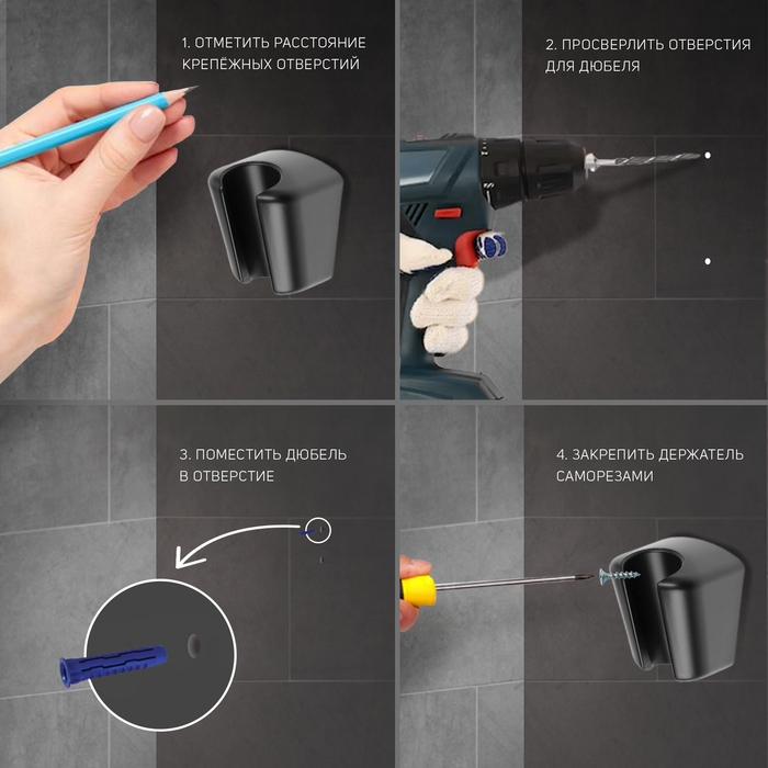 Держатель для душевой лейки ZEIN Z107, нерегулируемый, самоклеющийся, черный