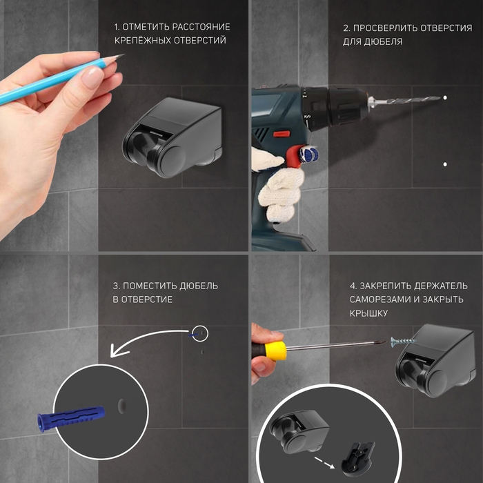 Держатель для душевой лейки ZEIN Z107, нерегулируемый, самоклеющийся, черный