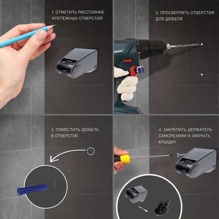 Держатель для душевой лейки ZEIN Z114, нерегулируемый, графит
