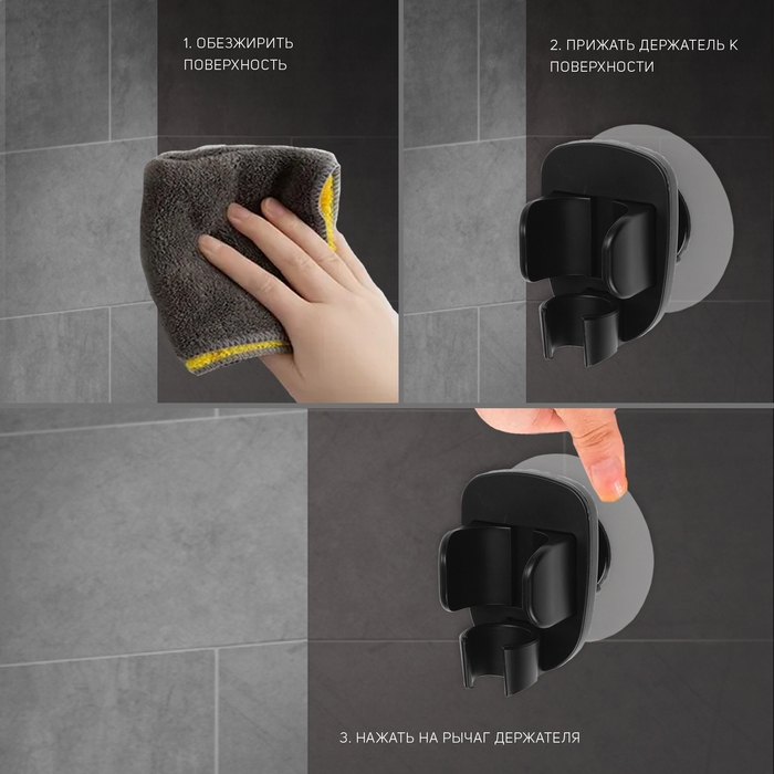 Держатель для душевой лейки ZEIN Z107, нерегулируемый, самоклеющийся, черный