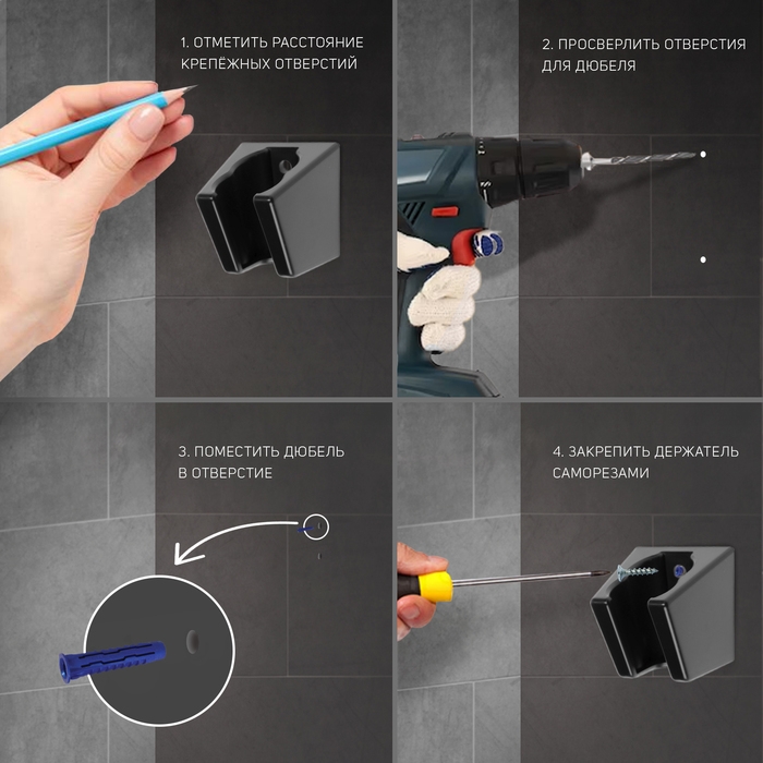 Держатель для душевой лейки ZEIN Z107, нерегулируемый, самоклеющийся, черный