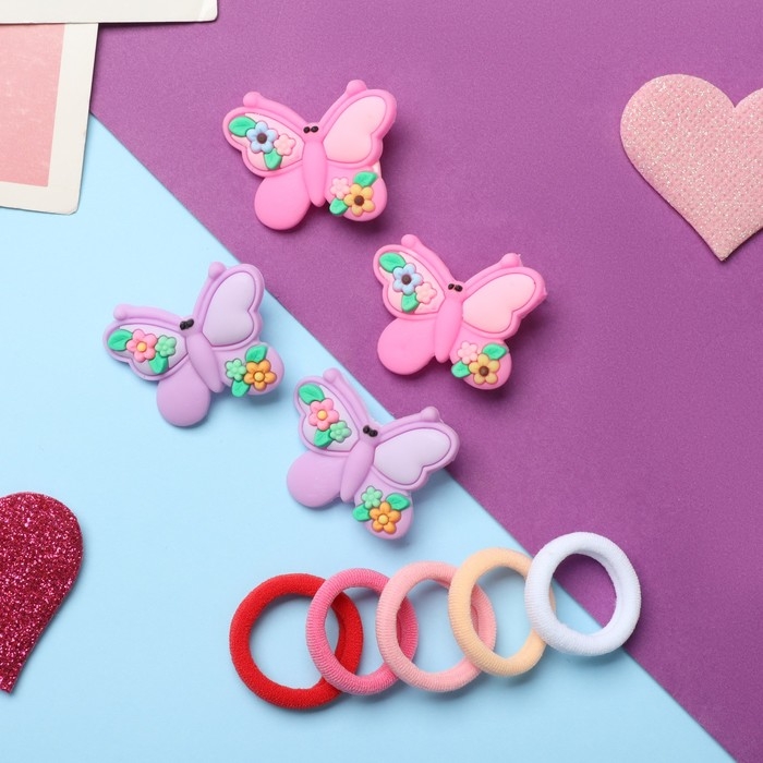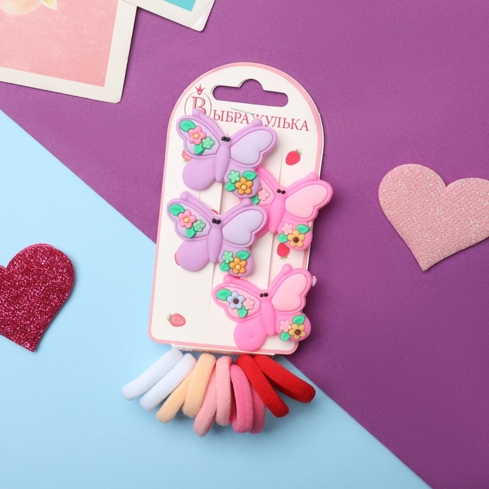 Набор для волос "Лучик" (10 резинок,4 зажима) бабочка яркая