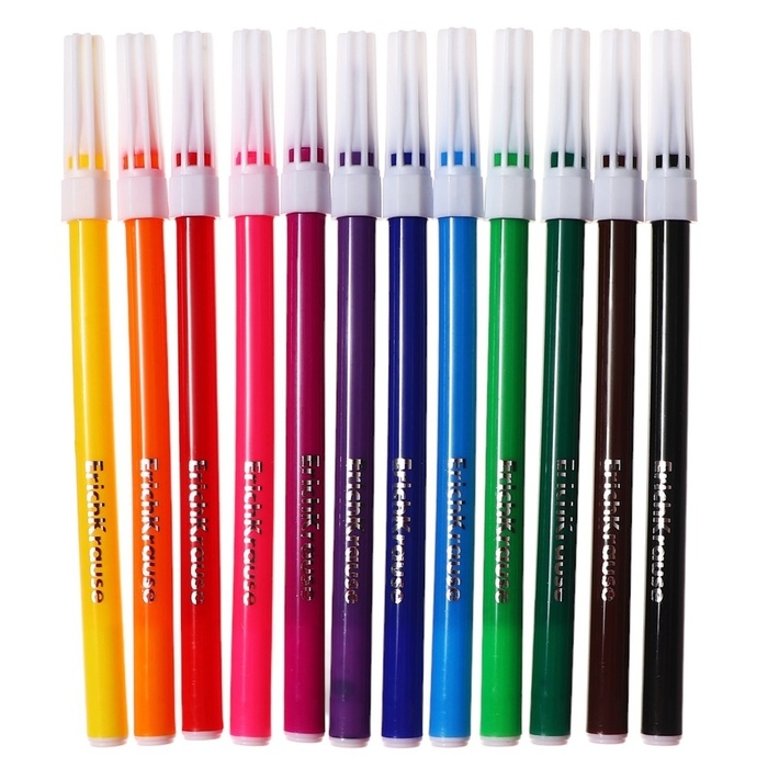 Фломастеры ErichKrause Basic со смываемыми чернилами на водной основе. Идеально подходят как для рисования, так и для раскрашивания. Широкая палитра ярких цветов. Наконечник сохраняет форму при интенсивном использовании. Чернила на водной основе не имеют запаха, отстирываются с большинства тканей и поверхностей. Герметичный корпус из полипропилена не образует острых сколов при поломке и предотвращает высыхание чернил.