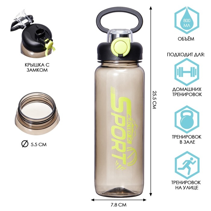 Бутылка для воды, 800 мл, SPORT, 800 мл, с поильником, черная
