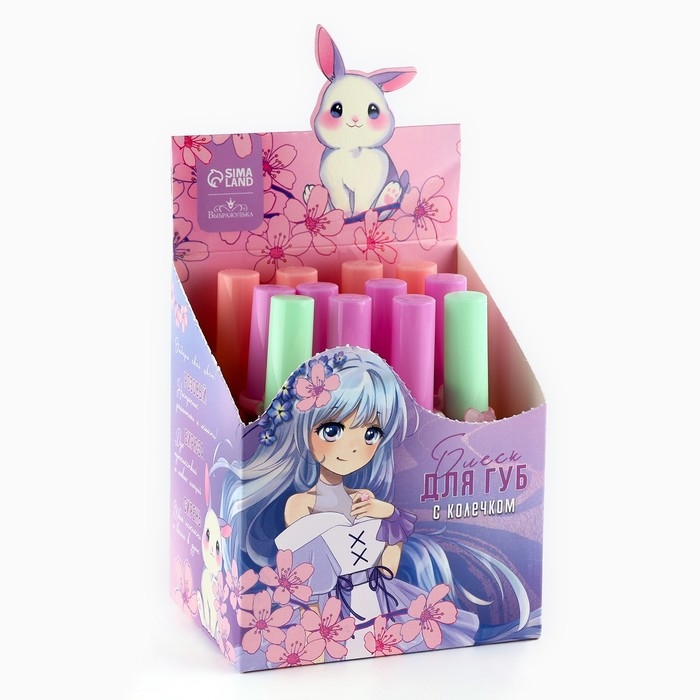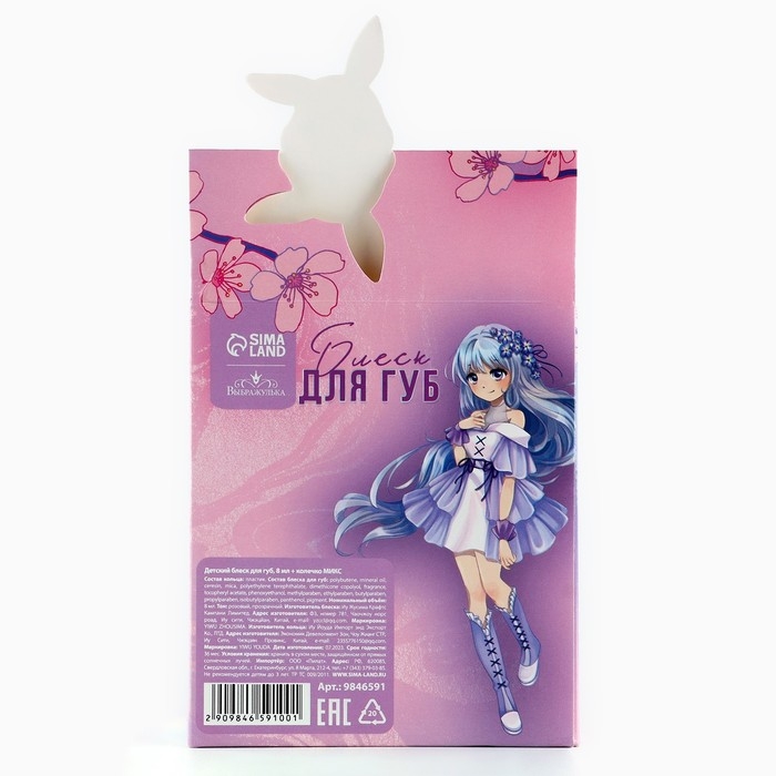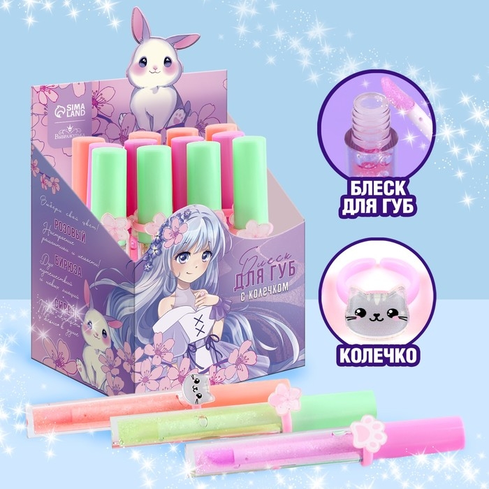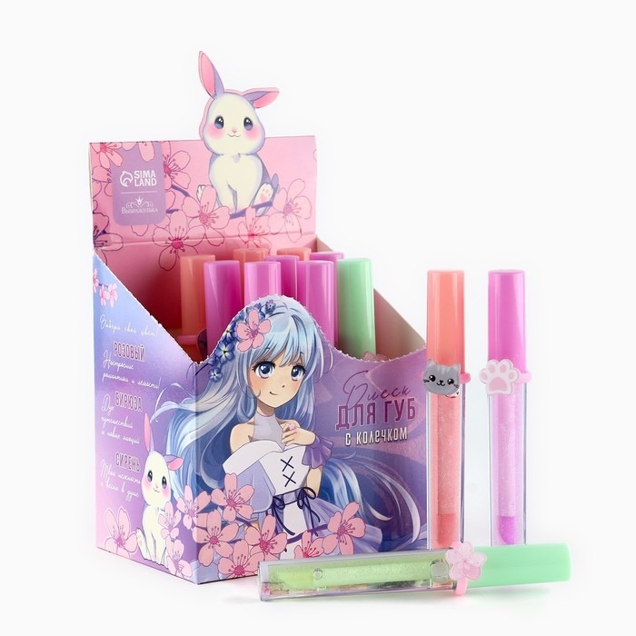 Детский блеск для губ «Аниме» с колечком, 8 мл, МИКС