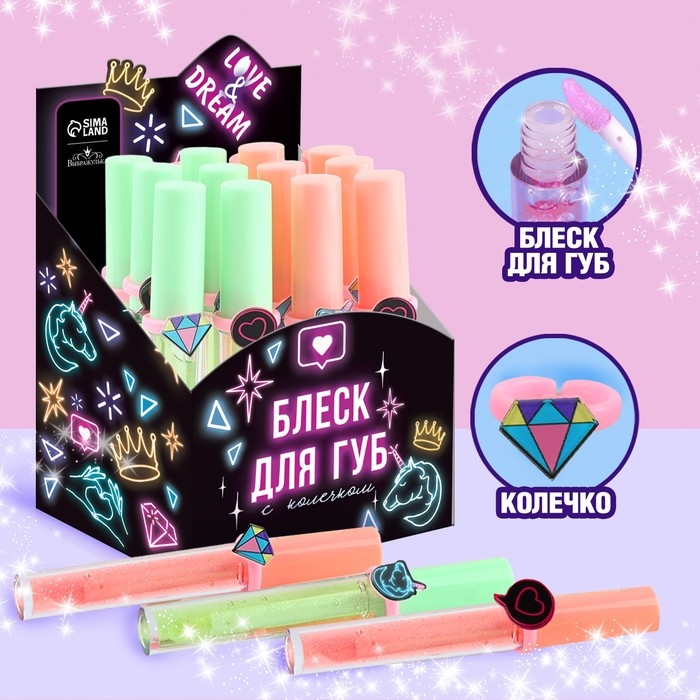 Детский блеск для губ «Будь в тренде» с колечком, 8 мл, МИКС