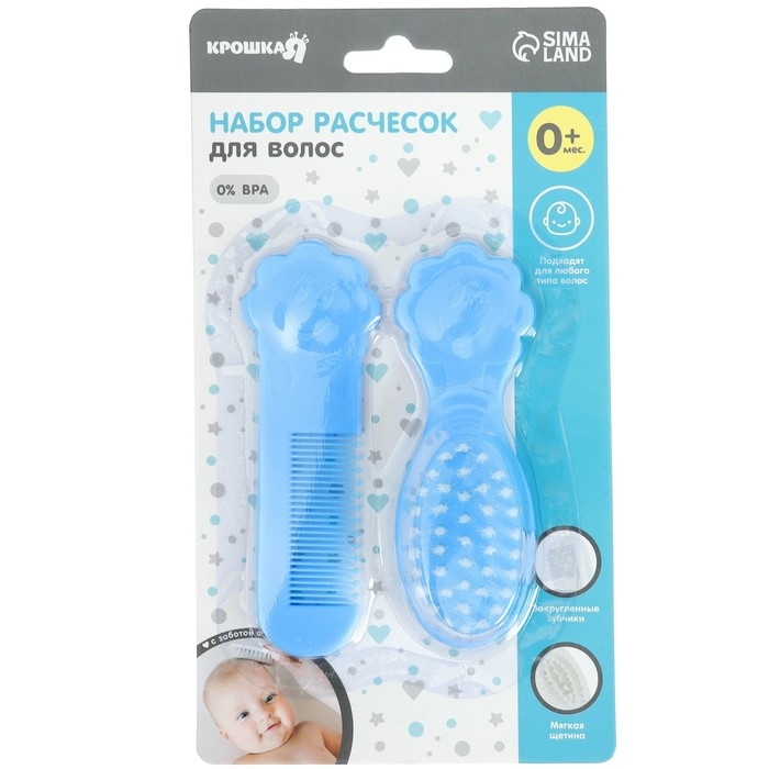 Расческа-щетка с мягкой щетиной и удобная расческа с закругленными зубчиками предназначены для малышей с первых дней жизни.