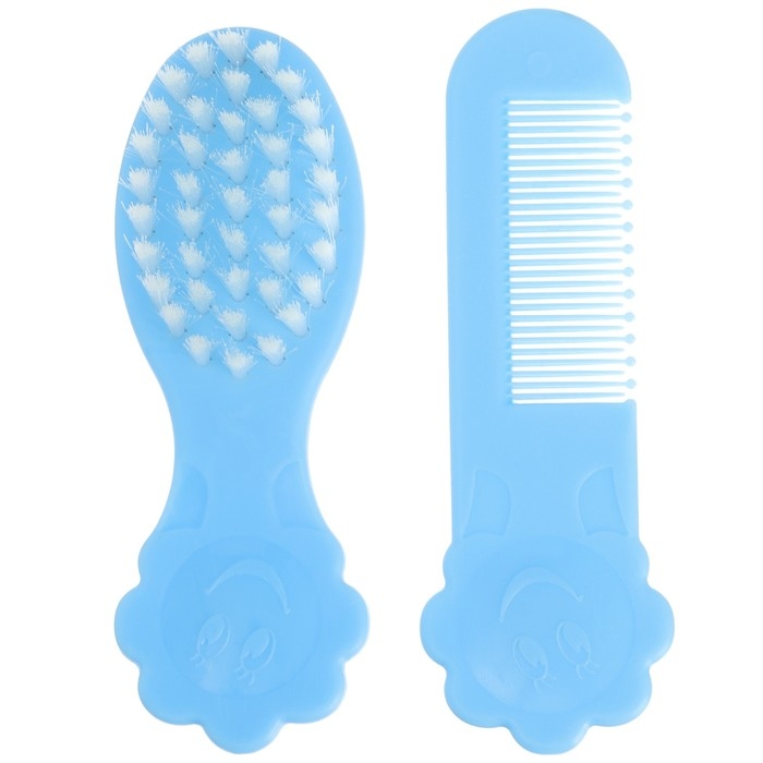 Расчёска детская + массажная щётка для волос, от 0 мес., цвет голубой, рисунок МИКС