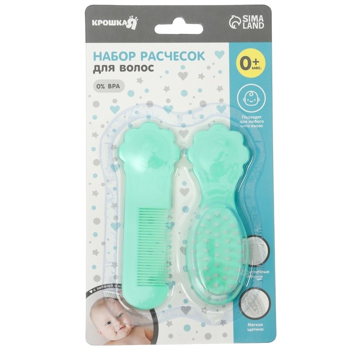 Расческа-щетка с мягкой щетиной и удобная расческа с закругленными зубчиками предназначены для малышей с первых дней жизни.