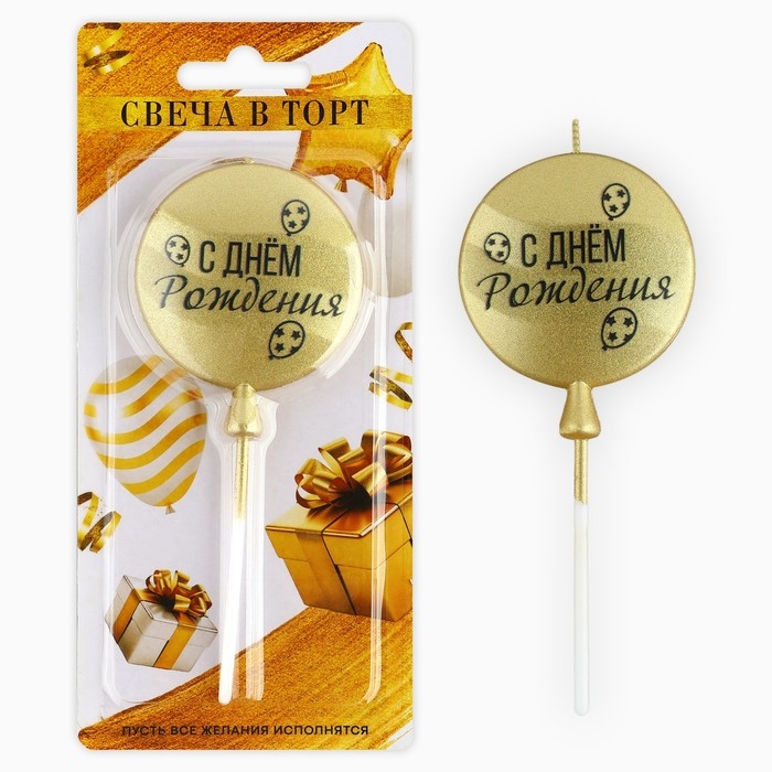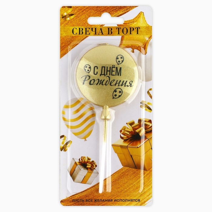 Свеча для торта «С днем рождения» золотая, 5,5 х 12 см