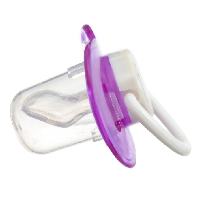 Соска - пустышка силиконовая ортодонтическая, от 3 мес., с колпачком, в контейнере, цвет фиолетовый