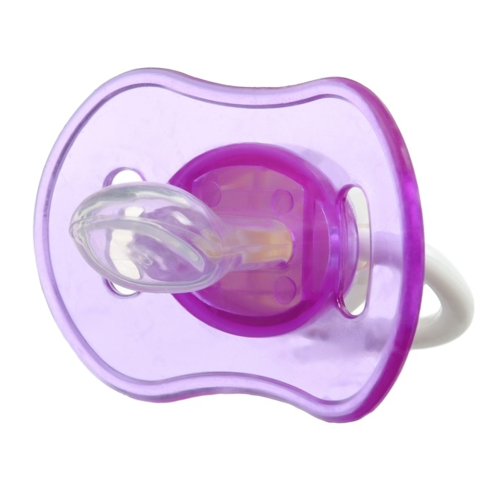 Соска пустышки силиконовая и имеет анатомическую форму, специальные вентиляционные отверстия на пустышке улучшают циркуляцию воздуха не раздражают кожу малыша и не оставляют следов и опрелостей. Создана для удовлетворения естественного сосательного рефлекса малышей. Пустышка анатомической формы имеет немного сплюснутый сосок, благодаря чему прилегает к языку.
