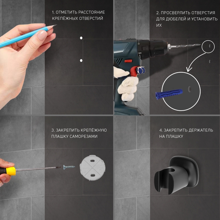 Держатель для душевой лейки ZEIN Z114, нерегулируемый, графит