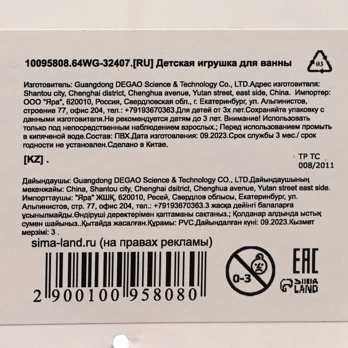Так же игрушка имеет сертификат соответствия EAC.