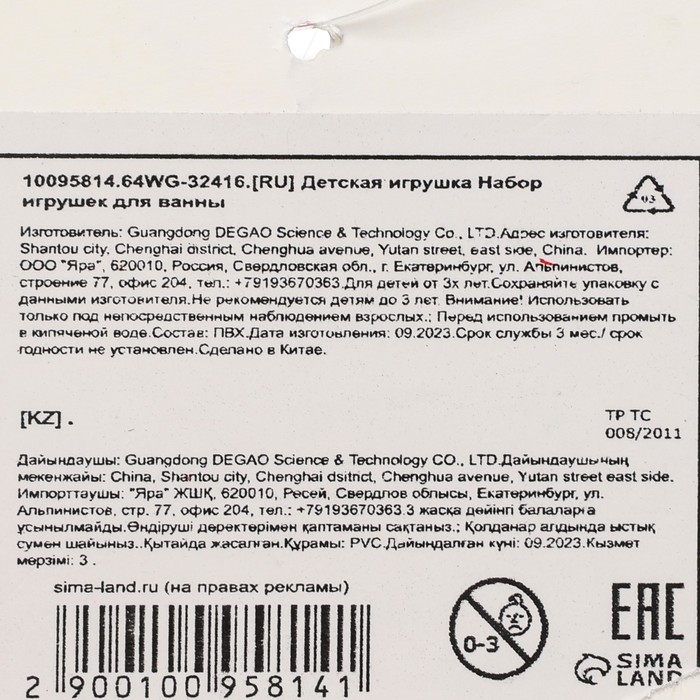 Качество товара подтверждается сертификатом соответствия ЕАС. Предназначено для детей с 3 лет.