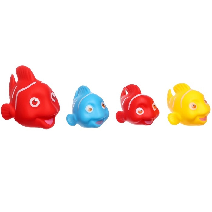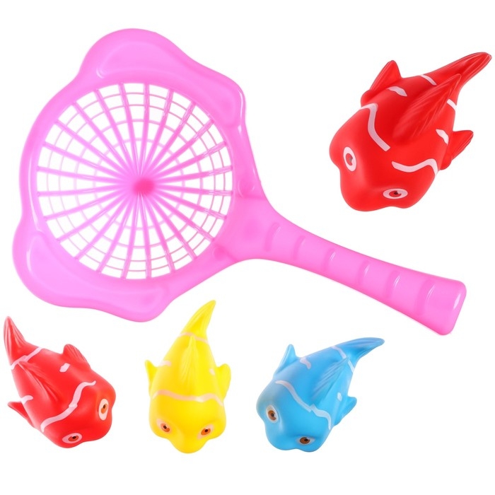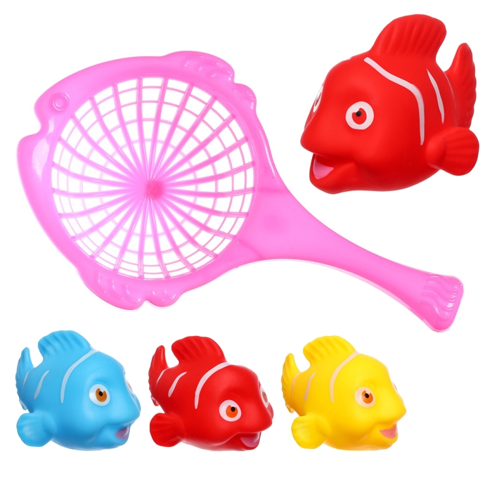 Набор резиновых игрушек для ванны «Рыбалка с цветными рыбками», 5 шт, сачок, цвет МИКС, Крошка Я