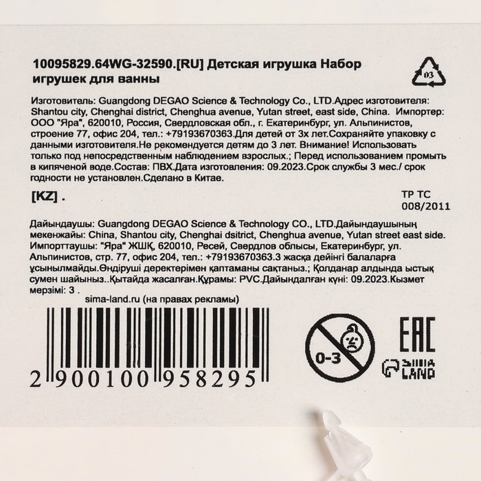Качество товара подтверждается сертификатом соответствия ЕАС. Предназначено для детей с 3 лет.