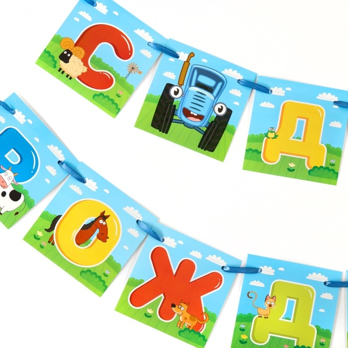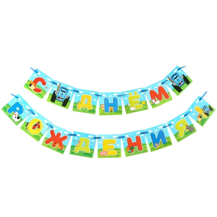 Набор для праздника "С Днем рождения!", шары, свечи, гирлянда, Синий трактор