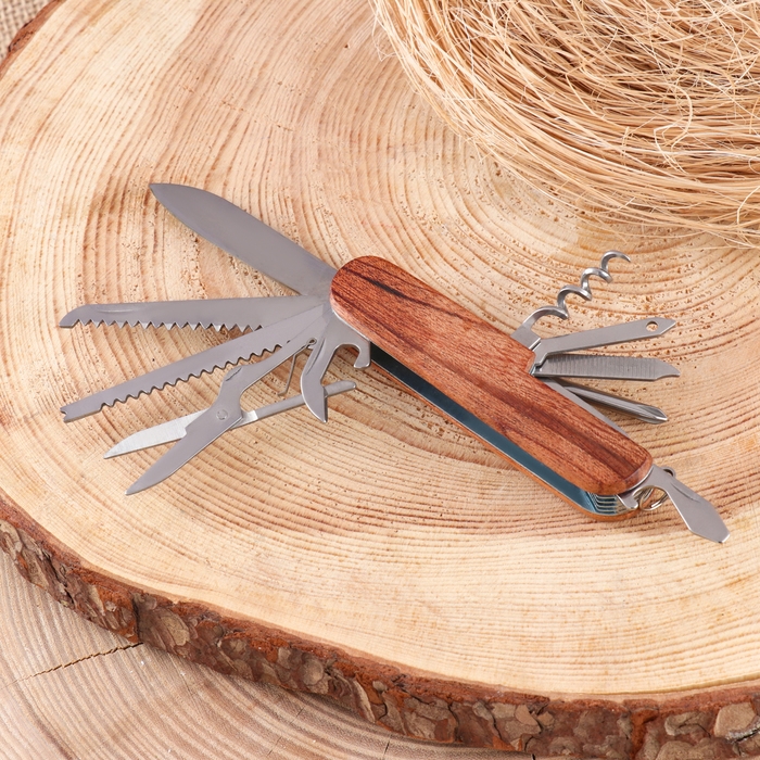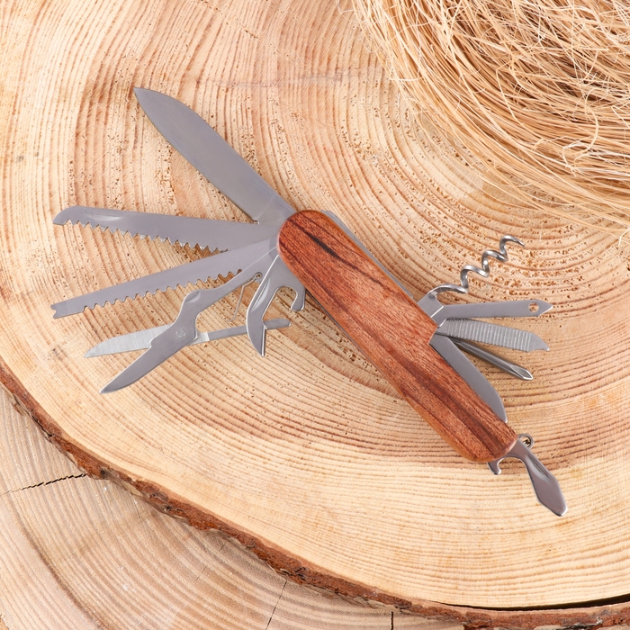 Нож швейцарский 11в1 с деревянной ручкой