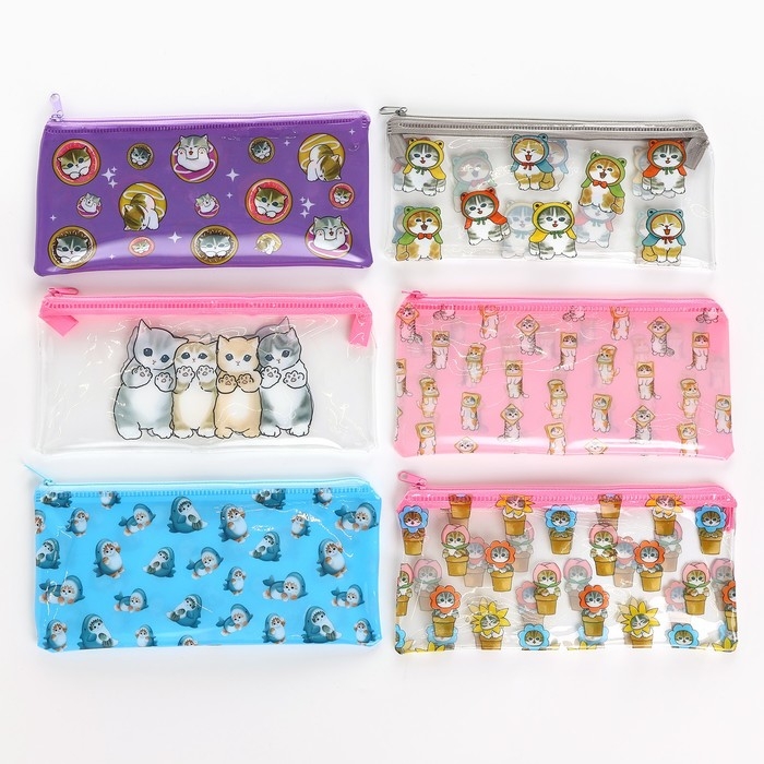 Пенал школьный мягкий плоский 9,5 х 20,5 ПВХ «1 сентября: Котятки» МИКС