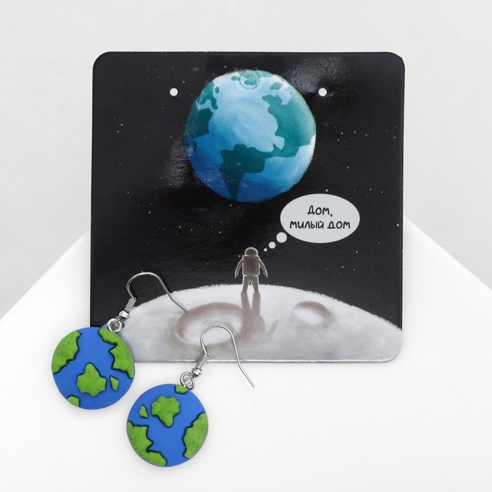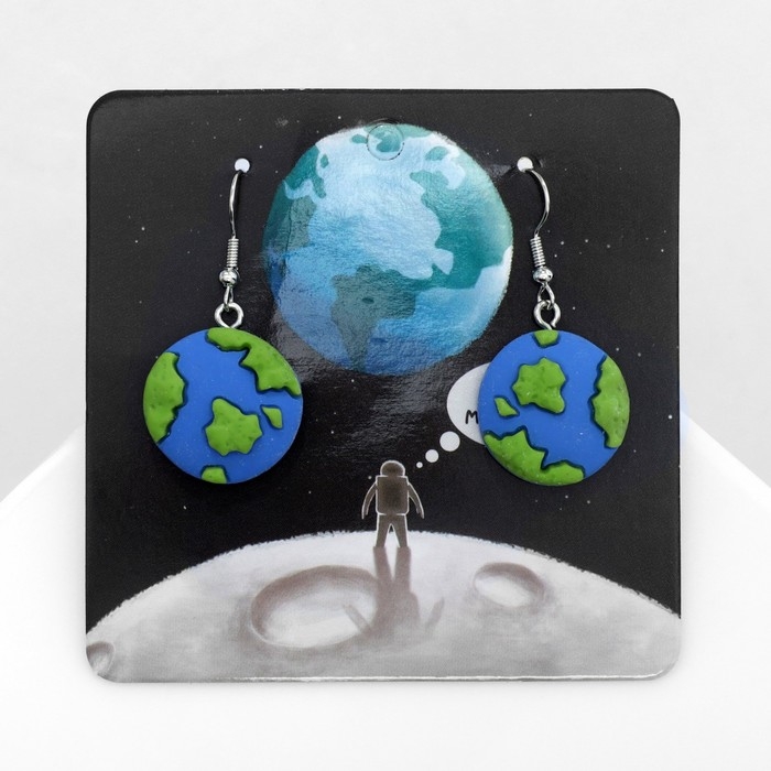 Серьги ассорти «Радость» земной шар, цвет сине-зелёный в серебре