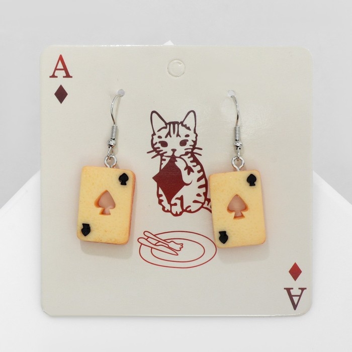 Серьги ассорти «Радость» карты, пики, цвет бежевый в серебре