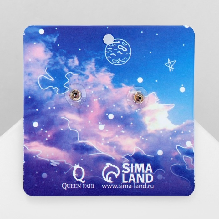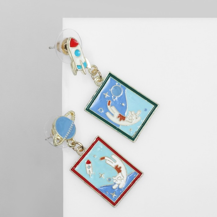 Серьги эмаль «Космос» и коты, цвет бело-синий в золоте