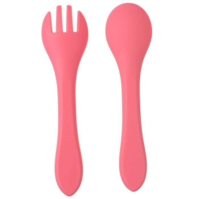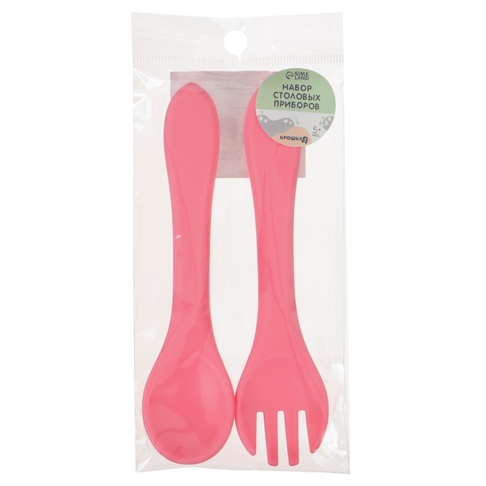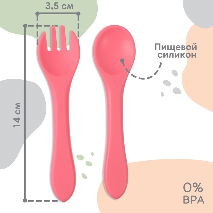 Набор детский столовых приборов, вилка и ложка Крошка Я, (силикон), розовый