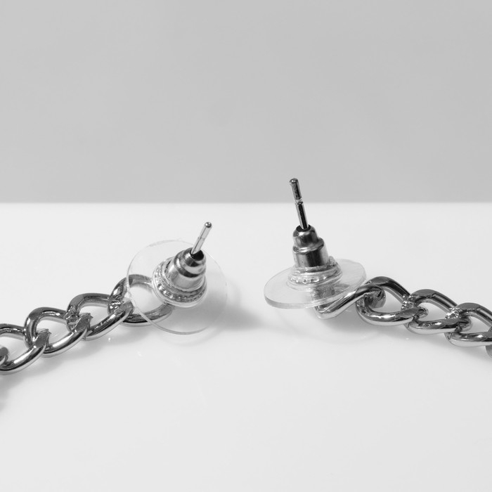 Серьги со стразами «Крестики» цепь, цвет бело-чёрный в серебре