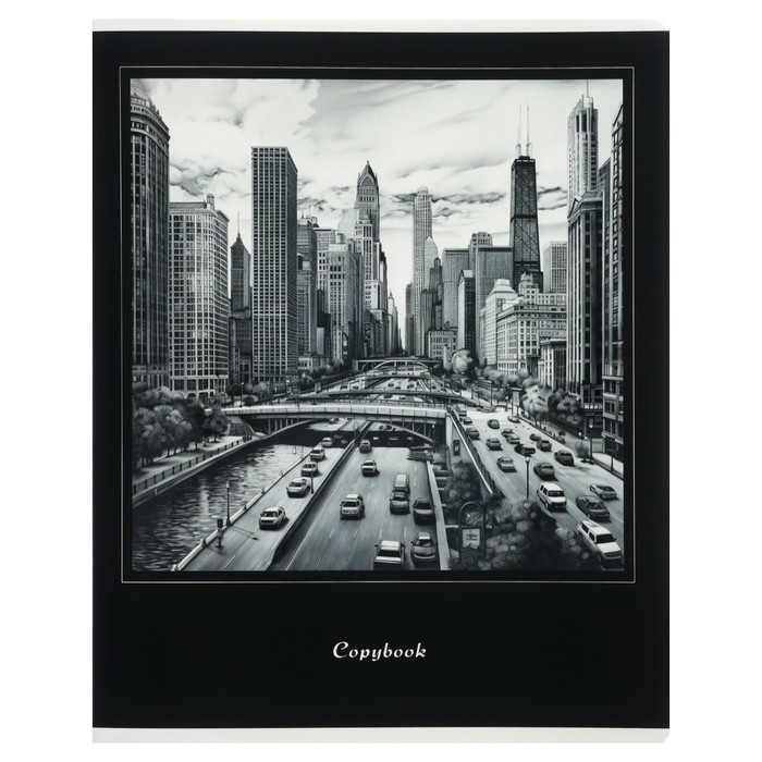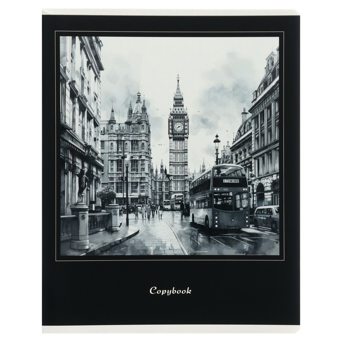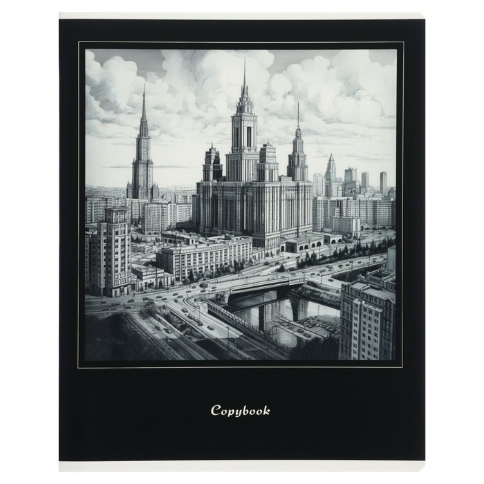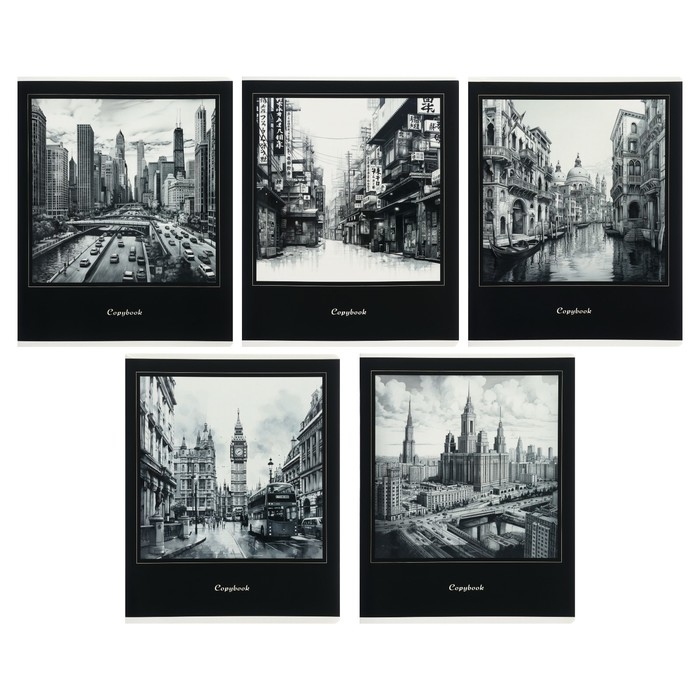 Тетрадь 48 листов в клетку на скрепке "Города", обложка мелованный картон, твин-лак, УФ-лак, блок офсет, МИКС