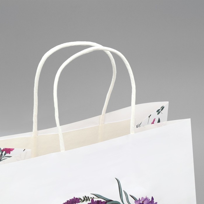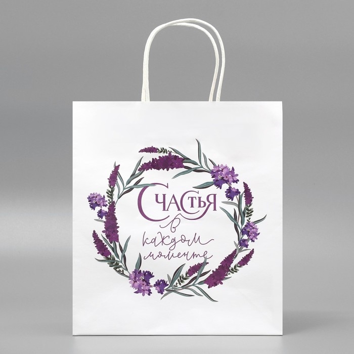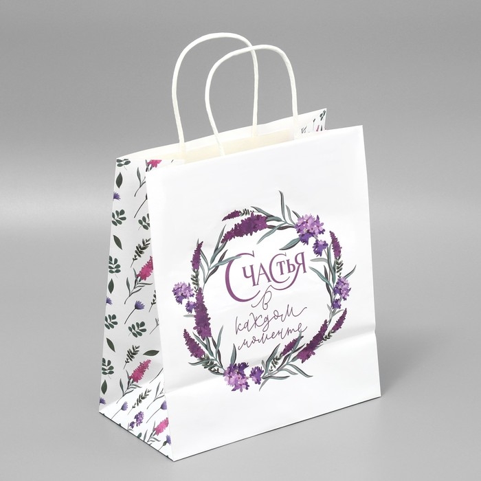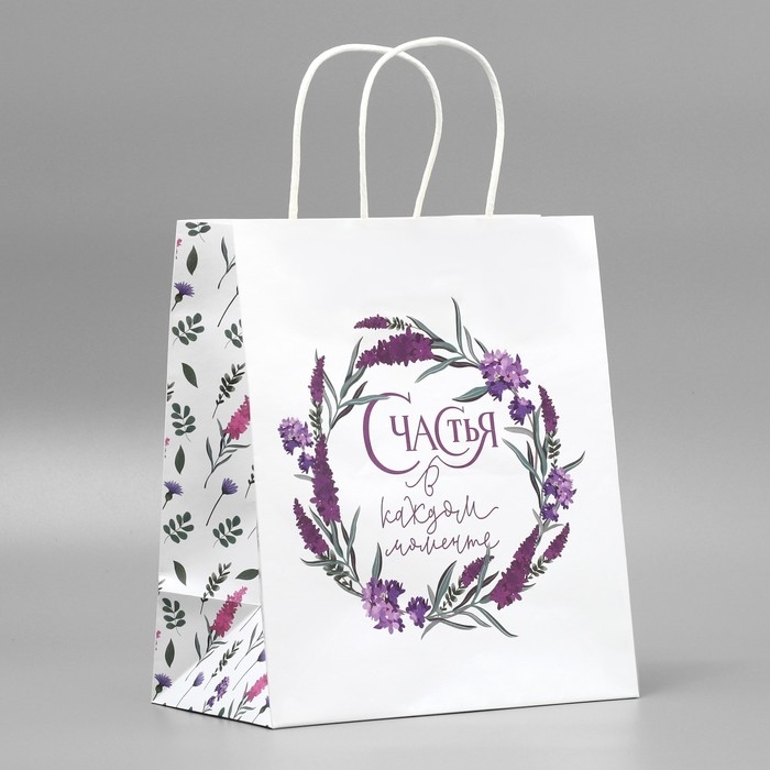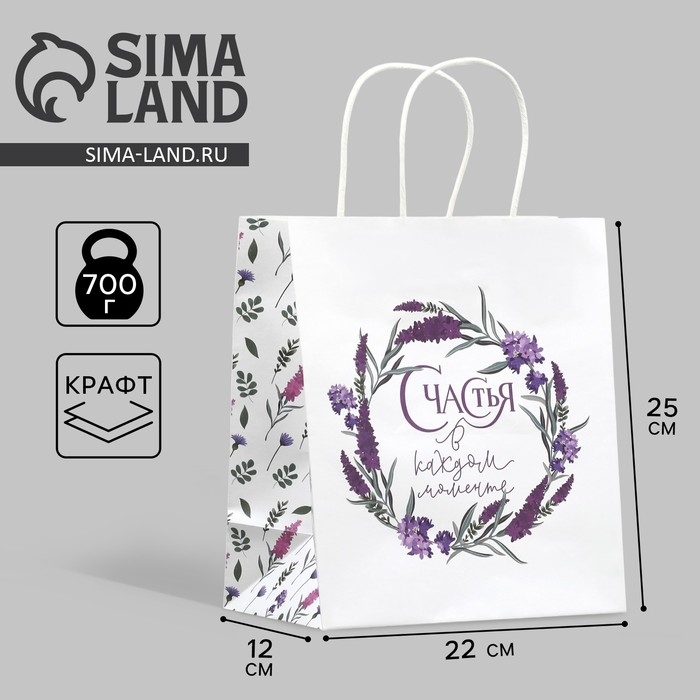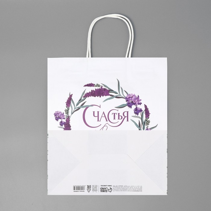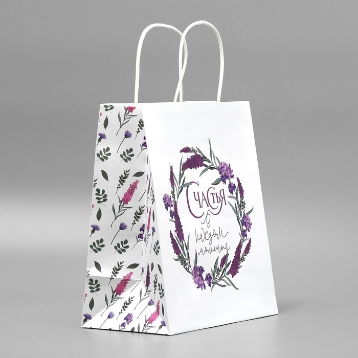 Пакет подарочный крафтовый, упаковка, «Счастья»,цветы, 22 х 25 х 12 см