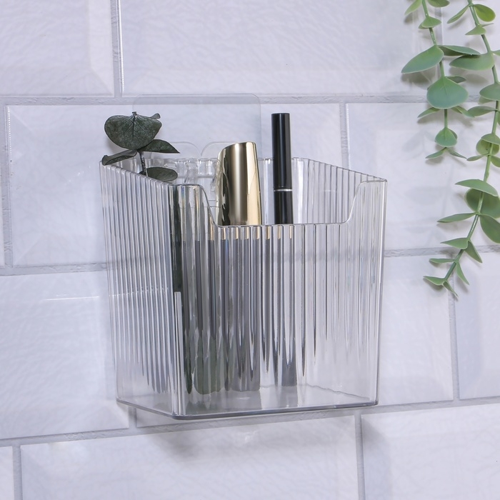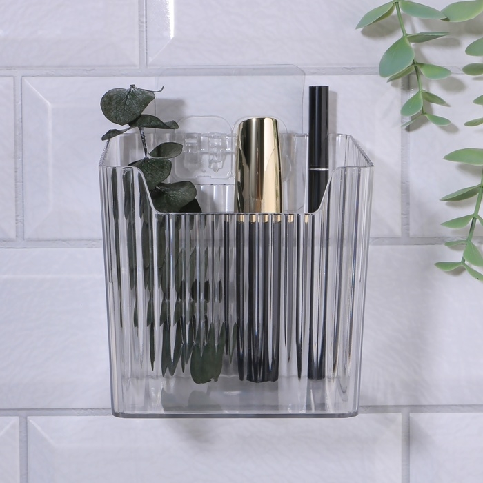 Органайзер для хранения « CRISTAL», навесной, 1 секция, с клеевыми крючками, 11,5 × 8 × 11 см, цвет прозрачный