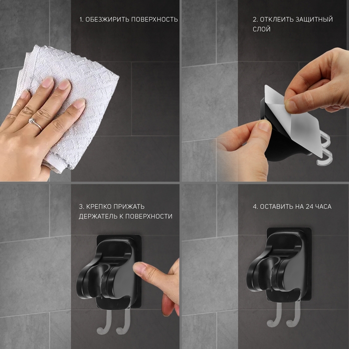 Держатель для душевой лейки ZEIN Z107, нерегулируемый, самоклеющийся, черный